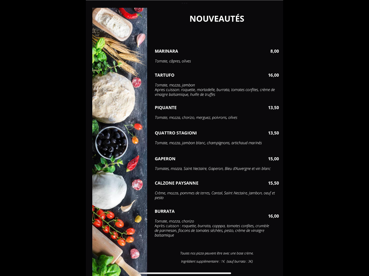La Vendetta offers a delightful selection of Italian dishes that cater to a variety of tastes. Their Pizza Burrata stands out with its creamy cheese and fresh toppings, offering a perfect balance of richness and flavor. The Calzone Paysanne is a hearty choice, filled with flavorful ingredients that make every bite satisfying. For those who love fresh and vibrant flavors, La Burrata is a must-try, with its delicate mozzarella paired with ripe tomatoes and basil, offering a light yet indulgent option. The seafood lovers will be thrilled with the Frutti Di Mare, a dish brimming with an array of fresh shellfish and seafood, all delicately seasoned. The restaurant’s menu brings a taste of Italy right to Saint-Bonnet-près-Riom, blending classic flavors with a modern twist. Whether you're in the mood for something comforting or a dish bursting with freshness, La Vendetta’s offerings won’t disappoint.